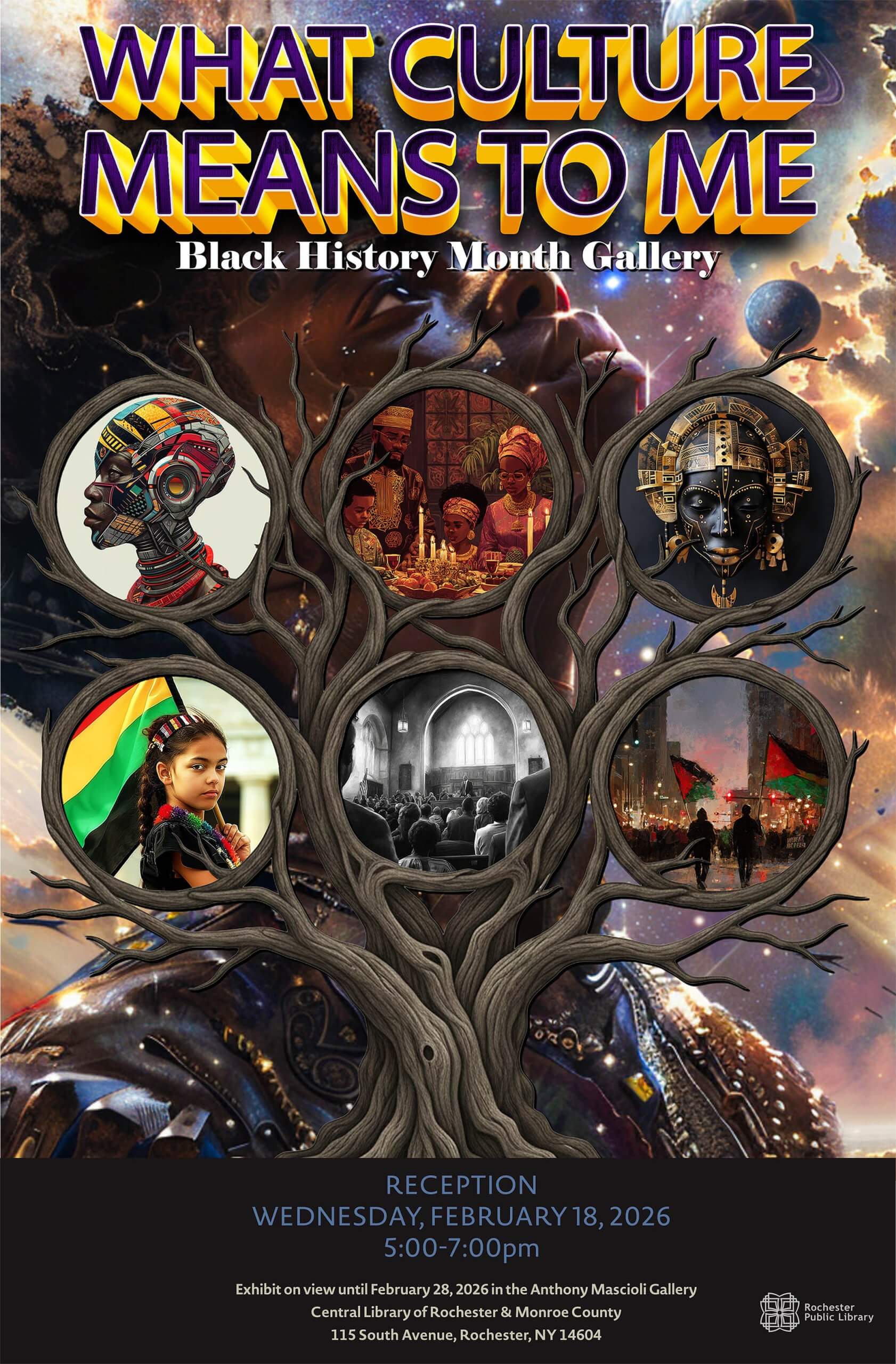 What Culture Means to Me is a youth art exhibit first installed in the imagineYOU digital lab at Teen Central. The art was created using Midjourney—a text-to-image AI generator—as a tool to translate personal stories into powerful imagery. The 25 images were curated by Rashaad Parker.